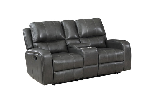 LINTON LEATHER CONSOLE LOVESEAT W/ DUAL RECLINERS-GRAY