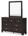 | Details | B441B4: Includes panel headboard, footboard, rails and slats, Made with hardwood solids, engineered wood veneer and MDF substrates, Dark brown finish, Floating panel headboard, Picture frame footboard, Foundation/box spring required, sold separately , Mattress available, sold separately, Assembly required, B441B1: Includes dresser and mirror, Made with hardwood solids, engineered wood veneer and MDF substrates, Dark brown finish, Metal bar pulls with bright nickel-tone finish, 7 smooth-gliding drawers with dovetail construction and metal center guides, Drawer interiors are lined with a wood grain laminate for a clean, finished look, Top moulding on dresser, Mirror attaches to back of dresser, B441-92: Made with hardwood solids, engineered wood veneer and MDF substrates, Dark brown finish, Metal bar pulls with bright nickel-tone finish, 2 smooth-gliding drawers with dovetail construction and metal center guides, Drawer interiors are lined with a wood grain laminate for a clean, finished look, Top moulding, | |