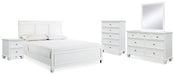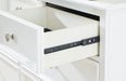 Details B680B4: Includes king panel headboard, footboard and rails, Made with hardwood solids and MDF substrate, White painted finish, Tapered feet, Foundation/box spring required, sold separately, Mattress available, sold separately, Assembly required, Bed is compatible with an adjustable base, B680B1: Includes dresser and mirror, Made with hardwood solids and MDF substrate, White painted finish, 7 smooth-gliding drawers with dovetail construction and ball-bearing side glides, Round metal drawer knobs with satin nickel-tone finish, Tapered feet, Mirror attaches to back of dresser, Assembly required, B680-46: Made with hardwood solids and MDF substrate, White painted finish, Round metal drawer knobs with satin nickel-tone finish, Tapered feet, Framed drawer fronts, 5 smooth-gliding drawers with dovetail construction and ball-bearing side glides, B680-92: Made with hardwood solids and MDF substrate, White painted finish, Round metal drawer knobs with satin nickel-tone finish, Tapered feet, Framed drawer fronts, 2 smooth-gliding drawers with dovetail construction and ball-bearing side glides,
