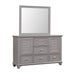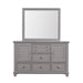 The Jamestown Dresser Mirror in Gray is a finely crafted piece that adds both elegance and durability to your bedroom. Constructed from solid Acacia, premium manufactured woods, and authentic Oak veneers, this mirror is designed to last, preserving the natural elegance of real wood. The Jamestown collection showcases modern transitional style, blending contemporary and traditional design elements. The soft, brushed gray finish exudes sophistication and versatility, effortlessly complementing a wide range of color palettes. The mirror features pristine, low-distortion beveled glass beautifully encased in picture frame-style moldings, offering a clean and sophisticated look that enhances any space, making it a perfect complement to your dresser and overall bedroom decor.