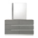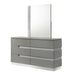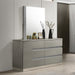 The Paradox Mirror in Gray is a perfect blend of contemporary style and superior functionality. Featuring a gleaming Gray gloss laminate finish, it offers a sleek, modern look with the added benefits of scratch and water resistance. This mirror is constructed using a combination of solid and manufactured woods, ensuring long-lasting durability. It utilizes low distortion glass to provide a clear reflection, enhanced by the glittery silver mylar inlay. This mirror not only adds a touch of elegance to any room but also complements the Paradox collection, transforming your space into a high-style retreat.