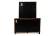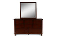 The Tamarack Mirror in brown cherry offers a perfect blend of durability and style. Crafted with a combination of solid poplar, basswood veneers, and eco-friendly manufactured wood, this mirror ensures strength and long-lasting durability. Its versatile transitional design combines contemporary clean lines with classic paneled detailing, seamlessly blending modern and traditional aesthetics. The rich brown cherry finish provides a warm and inviting glow, enhancing the natural beauty of the wood and adding a touch of sophistication to any bedroom. Experience a true and clear reflection with our premium low-distortion glass mirror, providing both function and elegance.
