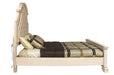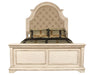 Romance your bedroom with the New Classic Furniture Anastasia Bed, a marvel of real wood construction crafted from solid poplar and oak veneer for unparalleled durability. The heirloom finish, achieved through a meticulous multi-step process involving wire brushing, clefts, rasping, threading, and rub throughs, creates an upscale, vintage look with each piece being one-of-a-kind. The creamy off-white stain, enhanced with brown and gray burnishing, exudes vintage French country cottage charm. Softly arched molding frames the easy-care 100% polyester button-tufted upholstered headboard, creating a welcoming ambiance. This bed goes beyond aesthetics with functional USB charging ports on either side of the headboard, providing a convenient place to charge devices. All furniture complies with safety standards, ensuring your comfort and peace of mind. With a 1-year limited warranty, the Anastasia Bed seamlessly combines timeless design with modern functionality for a secure and stylish addition to your bedroom.