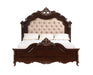 The Constantine Panel Bed by Royal Classics combines timeless elegance with exceptional craftsmanship. This stunning bed, available in a rich Cherry finish, includes a headboard, footboard, two side rails, and a bed slat kit. Crafted from a blend of Solid Pine and Fancy Face Birch Veneers, it promises heirloom quality and enduring beauty. The laborious multi-step finish highlights the wood''s natural charm, while burnished gold tipping on the intricate carvings enhances its luxurious appeal. The French Traditional design, featuring elaborate 18th-century Rococo style ornamentation, brings a touch of regal elegance to your home. The headboard, upholstered in 100% polyester sateen with crystal button tufting, provides plush comfort and includes USB charging ports on each side for modern convenience. The Constantine Panel Bed is a perfect blend of opulence and functionality, making it a sophisticated centerpiece for any bedroom.