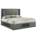 Discover the Nocturne Bed, a fusion of robust construction and chic design that promises both style and functionality. Crafted with the resilience of Rubberwood and the finesse of Okoume veneers, this bed is built to last. The slate gray finish, with its subtle sheen, harmonizes with textured charcoal panels for a sophisticated color palette. The headboard, a statement of subtle glam, boasts a backlit, rolled upholstery panel, offering an inviting space for relaxation. The bed’s design is mindful of space, incorporating four underbed drawers to maximize storage efficiency. Its contemporary aesthetic, highlighted by silver legs and ambient lighting, creates a modern sanctuary in any bedroom. This bed is not just a piece of furniture; it’s a lifestyle upgrade for those who appreciate a blend of comfort and elegance.