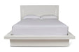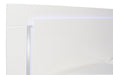 Upgrade your bedroom with the Sapphire Lighted Panel Bed in high gloss white. Constructed from high-quality manufactured wood, this bed features a flawlessly smooth, ripple-free surface and a sleek white laminate finish that adds a contemporary touch. The integrated blue LED lighting in the headboard and frame perimeter creates a captivating, glamorous effect that stands out in any modern interior. Combining elegant design with practical functionality, this bed is an ideal choice for those seeking to enhance their space with a touch of sophistication.