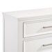 | Featured-3 | Versatile Style: The Andover 5 Drawer Chest masterfully embodies understated contemporary design, featuring clean lines that create a seamless and cohesive aesthetic. The sleek, elongated metallic handles infuse the pieces with a refined touch of sophistication, standing out gracefully against the pristine white finish. The framed drawer fronts add visual depth and dimension, while the sturdy, block-style legs ensure a solid foundation, reinforcing the collection’s robust and lasting construction. | |