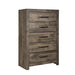 Introducing the Misty Lodge 5-Drawer Chest in Greige, a versatile and stylish storage solution for your bedroom. Crafted with durability and eco-friendliness in mind, this chest is constructed using manufactured woods and environmentally conscious decorative laminate, ensuring both beauty and quality. Its scratch-resistant rustic finish gives it a weathered, heirloom appeal while providing resistance to water, heat, and scratches, ensuring longevity and durability. Embrace the modern industrial mood with the mix of metal hardware and plank-style construction, making it a perfect fit for transitional, loft, or urban industrial settings. Experience the assurance of time-tested quality with storage drawers crafted with English dovetail joinery and smooth-rolling Kenlin center drawer glides, ensuring easy access to your belongings. Whether you need additional storage space in your bedroom or want to enhance the style of your living space, the Misty Lodge 5-Drawer Chest in Greige offers the perfect blend of functionality, durability, and style.
