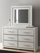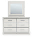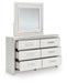 | Details | Includes dresser and mirror, Made with engineered wood (MDF/particleboard/plywood) and decorative laminate for the right balance of affordability and durability, Matte white finish with subtle replicated wood grain, Decorative laminate replicates natural or man-made material surfaces with consistent color, pattern and texture , Chrome-tone accents, Large-scale chrome-tone handles with faceted details, 6 smooth-gliding drawers, Drawer interiors are lined with a faux linen laminate for a clean, finished look, Mirror attaches to back of dresser; can also be mounted on wall horizontally or vertically, Safety is a top priority, clothing storage units are designed to meet the most current standard for stability, ASTM F 2057 (ASTM International), Drawers extend out to accommodate maximum access to drawer interior while maintaining safety, Minor assembly required | |