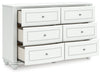Fit for a princess. This dresser’s crisp matte white finish pairs with charming elements like bun feet, crystal knobs and ornate beading—the perfect crowning touches for your girly girl. This spacious six-drawer piece is sure to make your little one feel like royalty.
