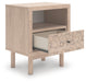 Looking for a nightstand that's both playful and practical for your little one? This piece is just the ticket. Its charming design and light wood finish create a whimsical and inviting atmosphere. A floral-patterned drawer adds a free-spirited vibe and plenty of bedside storage, so there's no excuse for a messy room. And a USB charger located on the back makes this nightstand that much more functional.