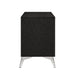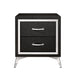 The Huxley 2-Drawer Nightstand in Black offers a blend of contemporary glam and durable construction for your bedroom. This nightstand is carefully crafted from manufactured woods and eco-friendly decorative laminate, ensuring it will last for years. The design features clean lines with metallic accents and flared silver legs for a modern touch. Its rich black finish provides a sleek, sophisticated look that is both timeless and modern, with bold black highlighting the metallic accents and smooth surfaces for a chic, polished aesthetic. The quality drawer construction includes English dovetail joinery and smooth-rolling center glides for long-lasting operation. Functional and fashionable, this nightstand provides ample storage for bedside essentials, with chic, crystal-studded drawer pulls for easy access.