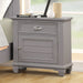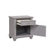 The Jamestown Wood Nightstand in Gray is a stylish and functional addition to your bedroom, offering the perfect blend of modern transitional design and practical storage solutions. This nightstand, expertly crafted from solid Acacia, premium manufactured woods, and authentic Oak veneers, ensures long-lasting durability while preserving the natural elegance of real wood. The soft, brushed gray finish exudes sophistication and versatility, effortlessly complementing a wide range of color palettes. Thoughtfully designed with clean lines and elegant panel detailing, this bedside table blends practicality with sophisticated style, enhancing the room's overall ambiance. The drawer glides smoothly on robust full-extension glides, showcasing meticulous dovetail joinery that highlights superior craftsmanship and ensures enduring quality. Inside, the finished drawer interiors prevent snags, while a large storage space is concealed behind the paneled door, providing ample room to keep your bedroom tidy and clutter-free.