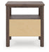 | Details | Made with engineered wood (MDF/particleboard/plywood) and decorative laminate for the right balance of affordability and durability, Rich brown finish over replicated walnut wood grain with authentic touch, Decorative laminate replicates natural or man-made material surfaces with consistent color, pattern and texture, Black drawer pull, 1 smooth-operating drawer, Drawer interior lined with a faux linen laminate for a clean, finished look, Open shelf, Ambient lighting under top, USB-A and USB-C charging ports, Power cord included; UL Listed, Minor assembly required | |