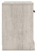 Details Made with engineered wood (MDF/particleboard/plywood) and decorative laminate for the right balance of affordability and durability, Light gray finish over replicated oak grain with authentic touch, Decorative laminate replicates natural or man-made material surfaces with consistent color, pattern and texture, Pewter-tone pulls, Smooth-gliding drawer with vinyl-wrapped sides and back for durability, Assembly required