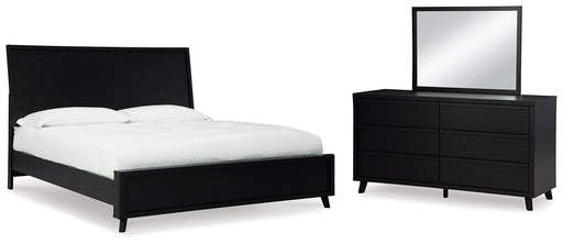 Danabrin California King Panel Bed with Mirrored Dresser and Nightstand