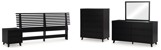 Danziar King Panel Headboard with Mirrored Dresser, Chest and Nightstand