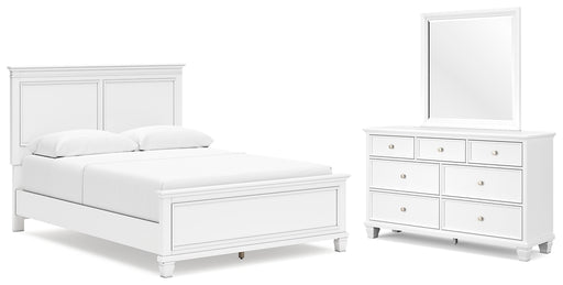 Fortman Queen Panel Bed with Mirrored Dresser and Nightstand