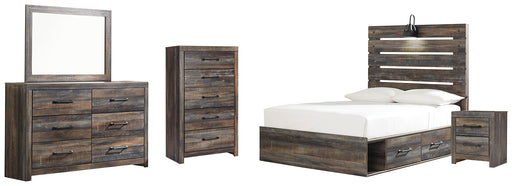 Drystan King Panel Bed with Storage with Mirrored Dresser, Chest and Nightstand