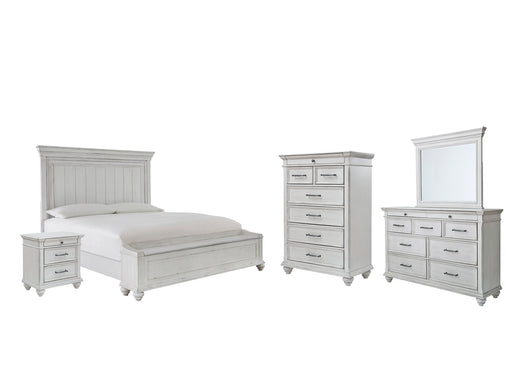 Kanwyn King Panel Bed with Mirrored Dresser, Chest and Nightstand