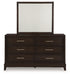 Neymorton California King Upholstered Panel Bed with Mirrored Dresser