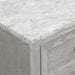 The Fiona Nightstand combines durability with timeless design. Crafted from Acacia Solids, Manufactured Woods, and Oak Veneer, it seamlessly blends the beauty of real wood with robust construction. The multi-step finishing process, including wire brushing and white glazing, results in a light, mist gray finish that enhances the natural wood grain. Sophisticated Details such as picture frame moldings, tapered legs, and sleek drawer pulls showcase its classic aesthetic. The genuine marble top, in elegant white and gray, adds a rich accent and perfectly complements the wood finish. Whether your decor leans traditional or contemporary, the Fiona Nightstand’s transitional style effortlessly fits in. Practicality meets craftsmanship with time-tested drawer construction. French front and English back dovetail joinery ensures strength, while full-extension glides allow smooth operation. Thoughtful extras include sanded and sealed drawers to prevent clothing snags, and a felt-lined top drawer to protect delicate items. The Fiona Nightstand is a versatile addition to any bedroom, combining style and functionality.