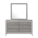 The Huxley 6-Drawer Dresser in Gray combines contemporary glam with durable craftsmanship, making it a stylish and functional addition to your bedroom. Carefully crafted from manufactured woods and eco-friendly decorative laminate, this dresser is built to last. It features clean lines enhanced with metallic accents and flared silver legs for a modern touch. The inviting gray finish provides a sleek, sophisticated look that complements contemporary interiors, creating a calming atmosphere. The neutral tone pairs beautifully with the metallic accents, adding a touch of glamour and cohesion to the overall design. The quality drawer construction includes English dovetail joinery and smooth-rolling center glides for long-lasting operation. With six spacious drawers, this dresser offers ample clothing storage, while chic, crystal-studded drawer pulls provide easy access. The Huxley 6-Drawer Dresser is the perfect blend of style and functionality for any modern bedroom.