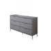 The Kailani 6 Drawer Dresser in gray combines modern minimalist design with durable, eco-friendly construction, making it a stylish and sustainable choice for any bedroom. Crafted from solid rubberwood, engineered wood, and eco-friendly decorative laminate, this dresser is built to last with resistance to scratches, moisture, and stains, ensuring long-term beauty with minimal upkeep. The dresser features clean lines, a sleek silhouette, and a chic ribbed texture, complemented by slim metallic handles and tapered legs that enhance its contemporary appeal. Wrapped in luxurious gray 100% Polyester Velvet, the textured drawers are accented by chrome pulls and glide effortlessly on full-extension slides, with dovetail joinery providing lasting strength and smooth operation. This dresser not only adds a touch of sophisticated glamour to your space but also offers practical, snag-free storage, making it a perfect blend of form and function.