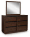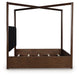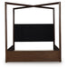 Details PCB857B6: Includes canopy, upholstered headboard, footboard, rails, posts and slats, Made with hardwood solids, mango wood veneer and MDF substrates , Side rails feature laminated solid hardwood slat support rails (or LVL) with glued and screwed blocking for added strength, Complex, rich dark brown finish, Foam headboard cushion with polyester upholstery , Measure room, including ceiling height, to ensure bed clears fans and light fixtures, Foam cushion with polyester upholstery , Foundation/box spring required, sold separately , Mattress available, sold separately , USB-A and USB-C charging ports, Power cord included; UL Listed, Assembly required, PCB857B1: Made with hardwood solids, mango wood veneer and MDF substrates , Complex, rich dark brown finish, Full-length metal rail pulls with matte black finish, 6 smooth-gliding drawers with fully finished interiors, dovetail construction and heavy-duty ball-bearing side glides (top drawers felt lined), Mirror attaches to back of dresser, Soft rounded pilasters, Raised plinth base,