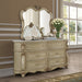 The Monique Mirror in Champagne is a perfect blend of heirloom quality construction and French Provincial elegance. Crafted with poplar solids and birch veneers, this mirror ensures strength and durability. Its design reflects the charm and sophistication of French countryside homes, featuring soft curved lines, intricate carvings, scalloped edges, and decorative moldings. The multi-step champagne finish is meticulously applied to enhance the wood's natural beauty, while antique gold glazing highlights the moldings and ornamental carvings. The exquisitely shaped, beveled mirror offers both stunning beauty and crystal-clear functionality with its low-distortion design. Combining traditional style with modern craftsmanship, the Monique Mirror adds a touch of elegance and practicality to any space.