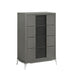 Meet the Nocturne 4 Drawer Chest, a testament to modern design and functionality. Constructed with the robustness of Rubberwood solid wood and the finesse of Okoume veneers, this nightstand promises durability and a touch of elegance. The slate gray finish, with its subtle sheen, harmonizes with textured charcoal accent panels, offering a visual and tactile experience that complements any bedroom decor. The drawers are a highlight, gliding effortlessly on ball bearing slides, and their interiors are finished to perfection, ensuring your belongings are housed as beautifully as they are accessible. With two spacious drawers, this nightstand offers ample storage for all your bedside necessities. The silver legs add a final touch of sophistication, anchoring the piece with a contemporary flair that is both striking and practical. This chest of drawers is not just a piece of furniture; it’s a seamless blend of style and utility, designed to enhance your living space.