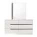 The Paradox Six Drawer Dresser in White combines contemporary appeal with robust functionality. Its gleaming white gloss laminate finish offers a sleek, modern look while providing the practical benefits of scratch and water resistance. Crafted from a combination of solid and manufactured woods, this dresser ensures long-lasting durability. The fully finished drawers offer snag-free storage and glide effortlessly on full-extension, ball-bearing drawer glides. The show-stopping design, featuring a modern white finish and glittering silver mylar inlays, transforms your bedroom into a high-style retreat. With six spacious drawers, this dresser provides ample storage space for all your clothing, making it an essential and stylish addition to any bedroom.