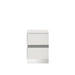 The Paradox Two Drawer Nightstand in White brings a blend of contemporary appeal and functional elegance to your bedroom. Featuring a gleaming white gloss laminate finish, this nightstand offers a sleek and modern look with the added benefits of scratch and water resistance. Constructed from a combination of solid and manufactured woods, it ensures lasting durability. The fully finished drawers provide snag-free storage and glide smoothly on full-extension, ball-bearing drawer glides. The show-stopping design, highlighted by the modern white finish and glittering silver mylar inlays, transforms your bedroom into a high-style retreat. With two spacious drawers, this nightstand offers ample space for all your bedside essentials, making it a perfect addition to your bedroom furniture.
