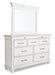 | Details | B777B6: Includes queen panel headboard, storage bench footboard and rails, Made with solid wood, veneers and engineered wood, Distressed whitewash finish, Foundation/box spring required, sold separately, Mattress available, sold separately, Assembly required, B777B1: Includes dresser and mirror, Made with solid wood, veneers and engineered wood, Distressed whitewash finish, Dark gray pewter-tone finished metal hardware, 7 smooth-gliding drawers, plus 2 small-scaled accessory drawers, Mirror attaches to back of dresser, Assembly required, B777-46: Made with solid wood, veneers and engineered wood, Distressed whitewash finish, Dark gray pewter-tone finished metal hardware, 7 smooth-gliding drawers, B777-93: Made with solid wood, veneers and engineered wood, Distressed whitewash finish, Dark gray pewter-tone finished metal hardware, 2 smooth-gliding drawers, plus 1 small-scale top accessory drawer, | |