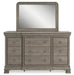 | Details | B924B2: Includes panel headboard and sleigh footboard with rails, Made with hardwood solids, birch veneer and MDF substrate, Light gray finish enhances the natural wood grain, Foundation/box spring required, sold separately, Mattress available, sold separately, Assembly required, B924B1: Includes dresser and mirror, Made with hardwood solids, birch veneer and MDF substrate, Light gray finish enhances the natural wood grain, Ring pull hardware, 9 drawers with fully finished interiors, dovetail construction and ball-bearing side glides, Jewelry drawer conveniently located in the center valance, Mirror attaches to back of dresser, | |