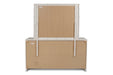 Complete your bedroom with the Sapphire Dresser Mirror in high gloss white. Expertly crafted from high-quality manufactured wood, this mirror features a flawlessly smooth, ripple-free surface and a glossy white laminate finish for a sleek, contemporary look. The wide frame, adorned with silver mylar, encases crystal-clear, low-distortion beveled glass for a perfect reflection. This mirror combines exceptional functionality with elegant design, adding sophistication to any space while seamlessly complementing modern interiors. Easy to clean and maintain, it’s an ideal choice for enhancing your bedroom's style and functionality.