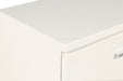 Enhance your bedroom with the Sapphire Modern 2-Drawer Nightstand in high gloss white. Constructed from high-quality manufactured wood, this nightstand features a smooth, ripple-free surface and a glossy white laminate finish for a sleek, contemporary look. The design is highlighted by elongated chrome drawer pulls and silver mylar bases that catch and reflect light, adding a striking modern effect. Inside, the roomy drawers offer ample storage with durable dovetail joinery and smooth full-extension slides for effortless use. This nightstand combines stylish design with practical functionality, making it a perfect addition to any contemporary space.