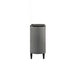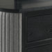 | Featured-3 | Mixed Material Mastery: Textured gray ribbed fabric curves around each side for the nightstand, creating a striking contrast against the dark wood finish, adding visual intrigue while softening the overall look. | |