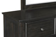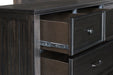 The Stafford County Wood 7 Drawer Dresser in walnut brown combines quality craftsmanship with contemporary design. Crafted from solid acacia, manufactured woods, and acacia veneers, this dresser is built to last and enhances any bedroom with its beauty. The rich dark finish, sleek clean lines, and simple metal hardware create a cohesive and sophisticated look. The deep walnut brown stain, featuring a smooth satin-like sheen, brings out the natural grain patterns and variations, while distressed detailing adds unique character and vintage charm. Heirloom-quality drawers provide a luxurious experience with smooth rolling ball bearing glides, dovetail construction, and finished interiors for snag-free storage. With seven spacious drawers, this dresser offers ample storage space. The top drawers are felt-lined to protect delicate items, while the bottom drawers are cedar-lined for optimal sweater storage. Combining modern convenience with timeless design, the Stafford County 7 Drawer Dresser is an ideal addition to any bedroom, offering both functionality and style.