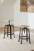 | Details | Made with acacia veneer and engineered wood, Distressed whitewash finish, Metal frame with black finish, Adjustable-height swivel seat, Footrest, Assembly required | |
