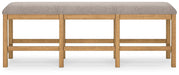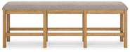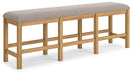 This counter height dining bench is a favorite choice for casual rustic interiors. Offering a great seating alternative, it's your answer for impromptu guests. And the textured upholstered seating? Deliciously versatile and comfortable.