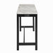 The Celeste 4-Piece Theater Bar Table Set is the epitome of contemporary design seamlessly blended with functional features. This set includes a 60-inch counter table and three black velvet stools, all adorned with an espresso base and a faux marble top in white with gray veining. Crafted with solid rubberwood and manufactured wood components, this dining set ensures durability that stands the test of time. The glossy finish on the table's top not only adds a touch of sophistication but also provides heat and water resistance for effortless cleaning and protection against wear. Luxurious seating is guaranteed with 100% polyester velvet fabric covering sumptuous memory foam cushions in the stools, accentuated by silver nailhead trim for an elegant touch. Function meets form with a built-in electrical outlet and 2 USB charging ports, transforming this set into a practical and productive work and play space.