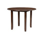 The small space friendly Gia Drop Leaf Dining Table and Chair Set has two 8" drop down leaves that transform this dining table from a 42" round dining set to 24" wide, fitting into compact spaces with ease. The dining table and chair legs are crafted of solid Rubberwood to add strength and stability. Elegant reverse diamond Mindi wood veneer dining table top accents the beautiful wood grains which are highlighted by the traditional brown cherry finish. The set includes two comfortable dining chairs with 100% polyester light brown upholstered seat cushions and backrests. The final touch is Gia's signature interlocking chain design on the chair back, giving this welcoming dining set a touch of sophistication. The result is a casual, contemporary dining set that ideal for dining rooms, kitchen nooks, dorms or game rooms.
