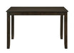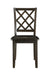 The Trellis 5 Piece Dining Set in brown offers a harmonious blend of style and durability, making it an excellent choice for any dining space. This set includes one dining table and four chairs, all crafted from solid rubberwood, manufactured wood, and birch veneers to ensure long-lasting quality. The traditional brown finish highlights the natural grain patterns of the wood and is purposely weathered with burnished edges for a timeless, heirloom look. The chairs feature diamond trellis-style backs, curved legs, and contoured saddle seats designed for ergonomic support and comfort. This dining set is perfect for small spaces, comfortably seating four and fitting seamlessly into kitchens or cozy dining areas. With table dimensions of 47.75" D x 36" W x 30" H and chair dimensions of 18" D x 21" W x 36" H, it provides both functionality and aesthetic appeal. Enhance your home with the Trellis 5 Piece Dining Set, offering a blend of comfort, style, and practicality.