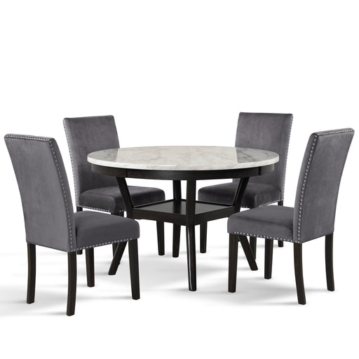 CELESTE ROUND DINING TABLE W/ 4 GRAY CHAIRS
