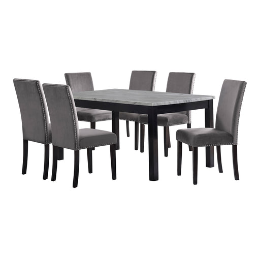 CELESTE - 64" DINING TABLE W/ 6 GRAY CHAIRS
