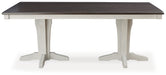 | Details | Made with solid acacia wood, cherry veneer and MDF substrates, Glazed light gray painted finish with brown cherry-stained top, Tabletop with planked wood effect, Double pedestal base, Assembly required | |