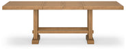 | Details | Made with rubberwood solids, distressed pine veneers and MDF substrates, Distressed light brown pine finish, Double trestle base, Seats up to 10, 2 removable center leaves, Table extends by pulling both ends and dropping in leaf, Solid wood stretcher, Assembly required | |