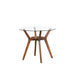 The Oscar Round Glass Counter Height Table features a 42-inch tempered glass top and sculptural walnut wood base, blending Mid-Century curves with modern ease. Built from solid rubberwood and walnut veneers with a clear topcoat, it highlights natural wood grain and lasting craftsmanship. The lower round shelf adds function and flair, while the compact size comfortably seats four—perfect for kitchens, breakfast nooks, or small dining areas with contemporary style.