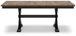 Raise the bar on modern farmhouse style with this dining extension table. Its handsome good looks are accentuated with a two-tone finish and a casual butcher block veneer top. The sturdy silhouette adds a hearty element, whether your style is vintage, country or eclectic. This richly crafted multi-use table extends to seat eight comfortably, serving up charm wherever folks decide to take a seat.
